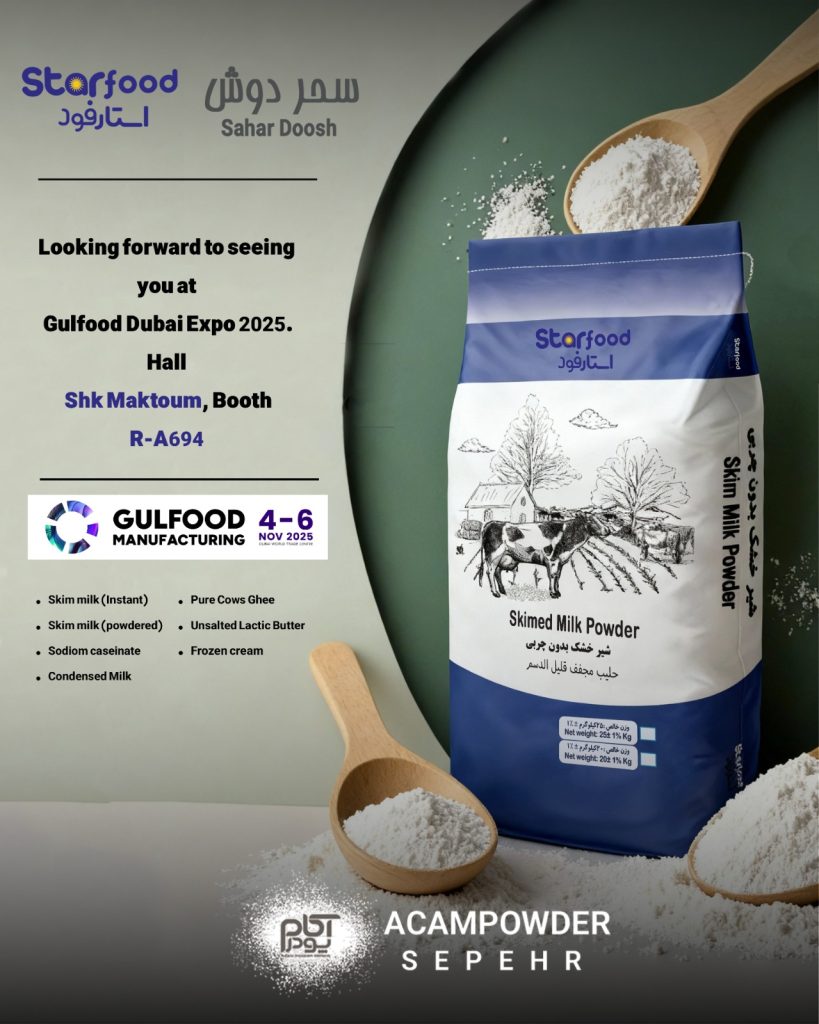 شرکت آکام پودر سپهر (ACAMPOWDER SEPEHR) مفتخر است حضور خود را در نمایشگاه بینالمللی GulfFood Manufacturing Dubai 2025 اعلام کند.